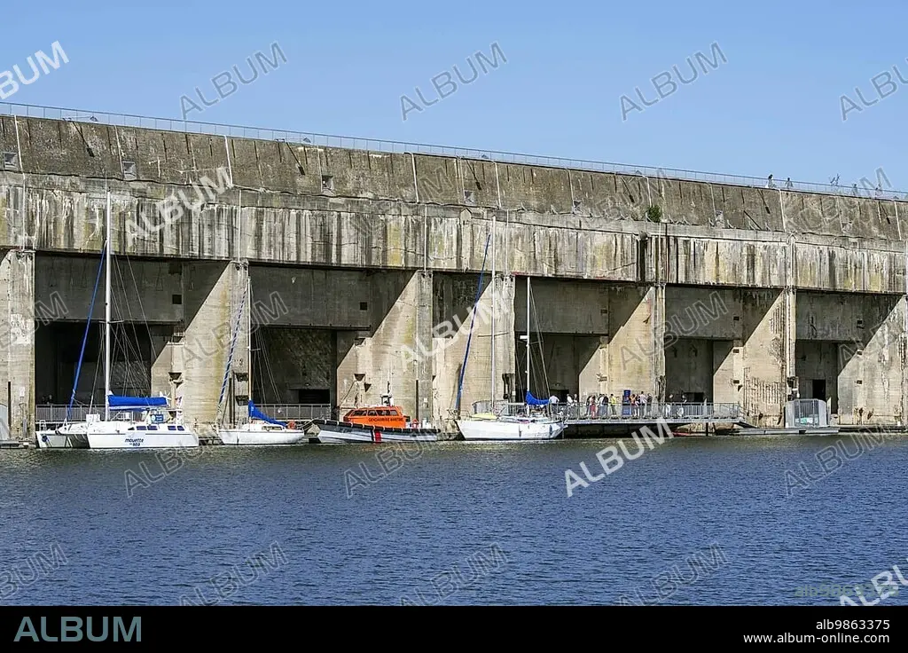 German WW2 Kriegsmarine submarine base, fortified U-boat pen in the port of Saint-Nazaire, Loire-Atlantique, France, Europe