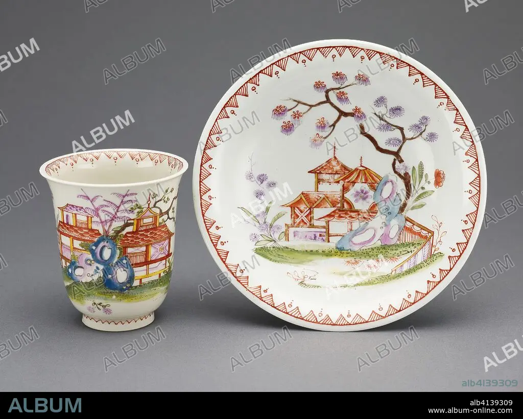 Cup and Saucer. Du Paquier Porcelain Manufactory (Austrian, 1718-1744); Austria, Vienna. Date: 1720-1730. Dimensions: Cup: 7.3 × 6.7 cm (2 7/8 × 2 5/8 in.); Saucer: diam. 13.3 cm (5 1/4 in.). Hard-paste porcelain, polychrome enamels, and gilding. Origin: Vienna.