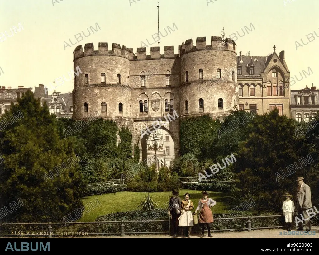 Hahnentorburg is one of the original twelve gate castles in the eight-kilometre-long medieval city wall of Cologne; North Rhine-Westphalia; Germany; Historic; digitally restored reproduction of a photochrome print from the 1890s; Europe