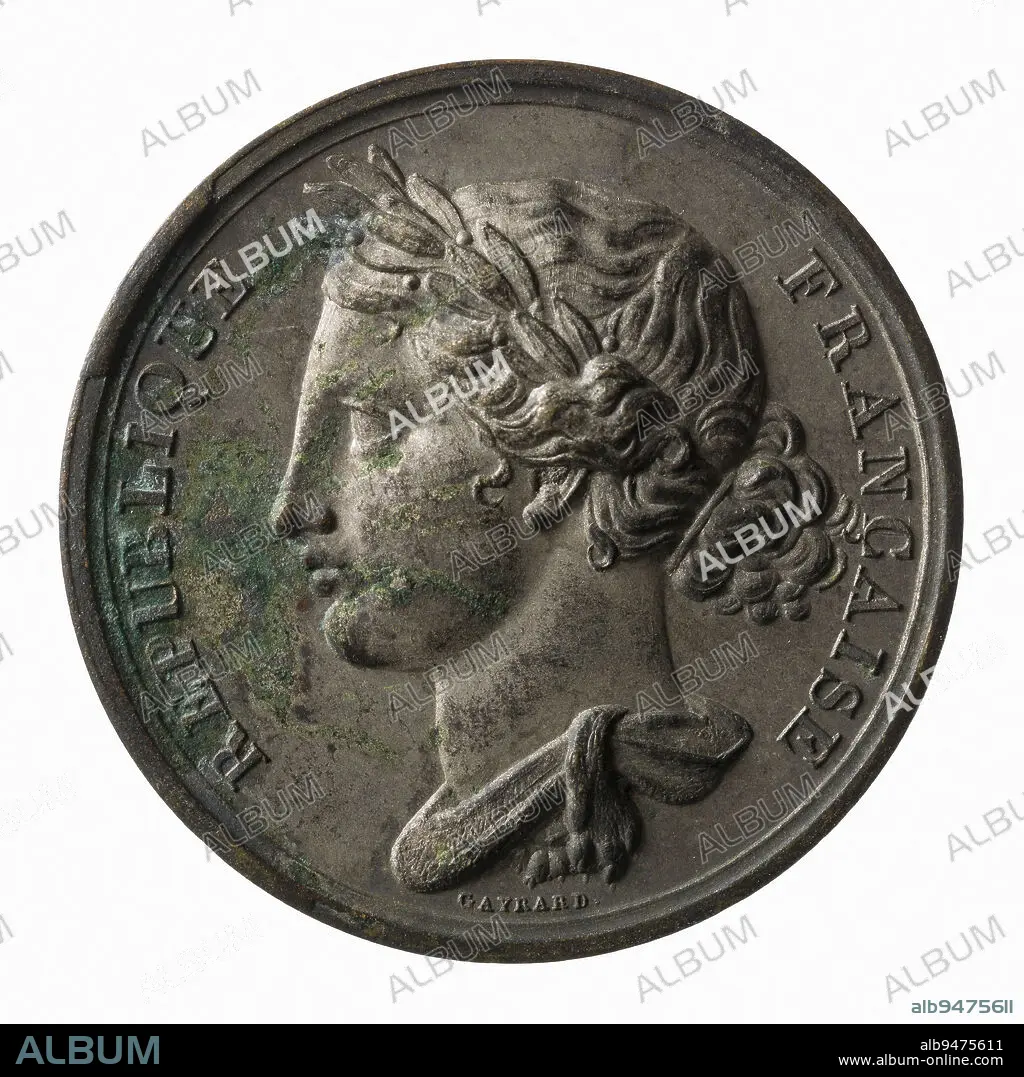 Promulgation of the new constitution of the Second Republic Place de la Concorde, November 12, 1848, Gayrard, Raymond, Engraver in medals, In 1848, 19th century, Numismatics, Medal, White copper, Paris, Dimensions - Work: Diameter: 2.7 cm, Weight (type dimension): 9.87 g
