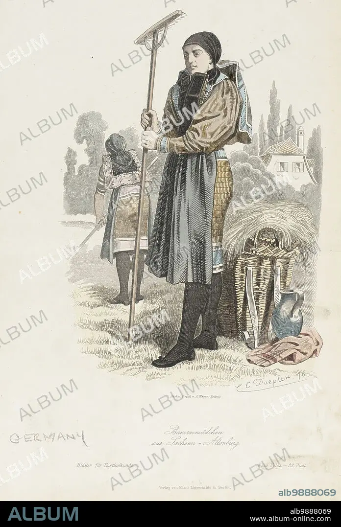 AUGUST WEGER, CARL EMIL DOEPLER. Costume Plate (Bauernmadchen aus Lachsen), 1876. Creators: Carl Emil Doepler, August Weger.