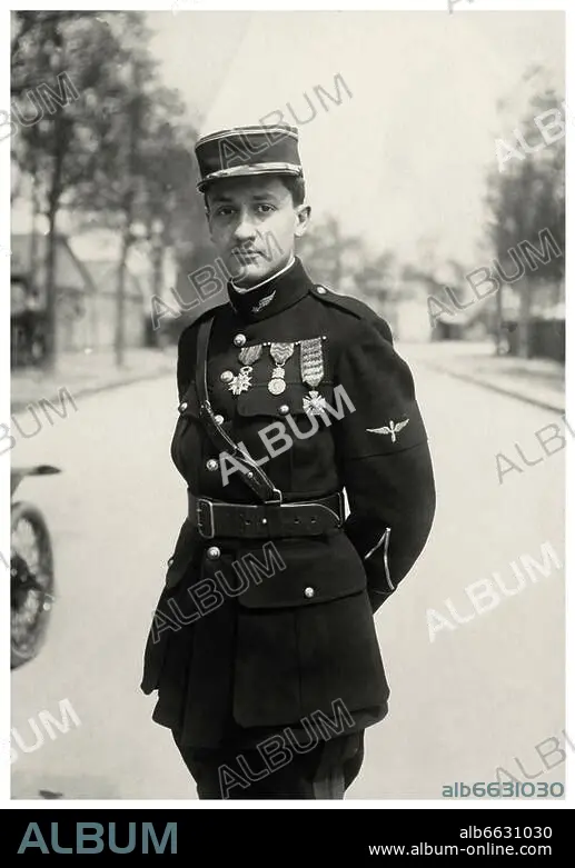 Guynemer, Georges; franz. Kampfflieger im 1. Weltkrieg; Paris 24.12.1894-gefallen über Poelkapelle (Belgien) 11.9.1917.-Porträtaufnahme.-Aus dem Fotoalbum: "Guerre (contre) l'Allemagne" (Erster Weltkrieg, Frankreich, 1914-18), Nachlaß Maurice Levert.