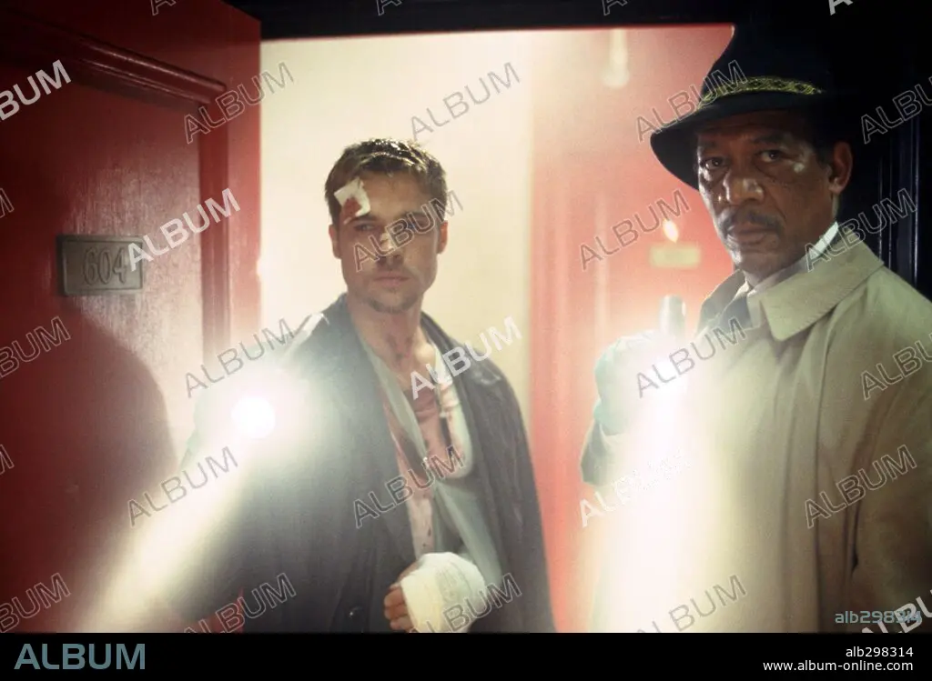 BRAD PITT und MORGAN FREEMAN in SEVEN, 1995, unter der Regie von DAVID FINCHER. Copyright NEW LINE CINEMA.