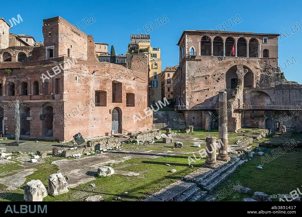 Trajan's Forum, the house of the Order of Malta with loggia at the back, also Casa dei Cavalieri di Rodi, Trajan's Markets on the left, Rione I Monti, Rome, Lazio, Italy, Europe