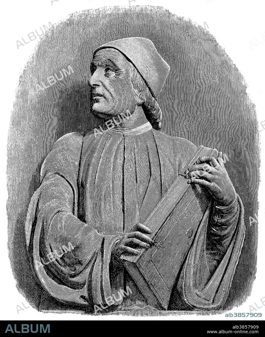 Historical illustration from the 19th Century, portrait of Marsilio Ficino, 1433 - 1499, an Italian humanist and philosopher