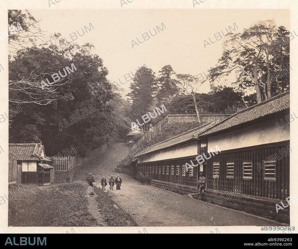 Samurai at the palace of Daimyo Shimazu Tadayoshi of Satsuma, Samurai outside the palace of the Daimyo of Satsuma (original title), Felice Beato (attributed to), Japan, 1867, paper, albumen print, height 213 mm × width 277 mm