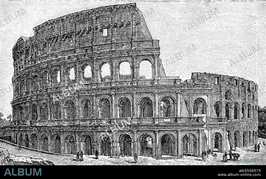 Das Kolosseum oder Kolosseum, auch bekannt als das Flavian Amphitheater, ist ein ovales Amphitheater im Zentrum der Stadt Rom, Italien, Historisch, digital restaurierte Reproduktion einer Originalvorlage aus dem 19. Jahrhundert