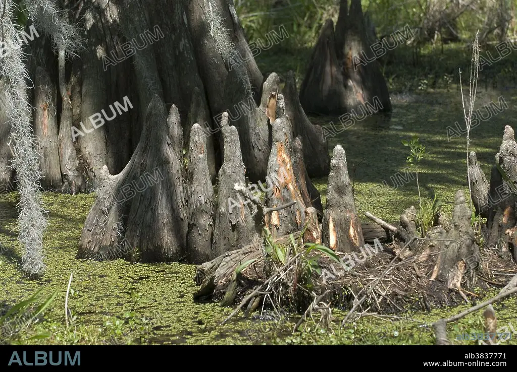 Bald cypress (Taxodium distichum) knees (roots) in a Louisiana swamp, Jean Lafitte National Preserve.