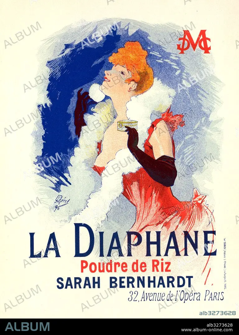 Poster for la Poudre de Riz la Diaphane. face-powder; sarah Bernhardt, Chéret, Jules (1836-1932), French painter and lithographer who became a master of Belle Époque poster art. He has been called the father of the modern poster.