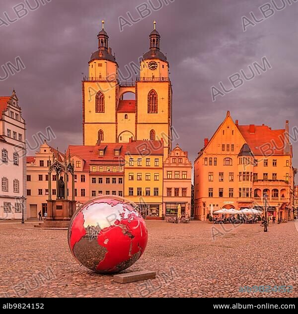 St.Marien town church with Luther monument on the market square; Wittenberg; Saxony-Anhalt; Germany; Wittenberg; Saxony-Anhalt; Germany; Europe.