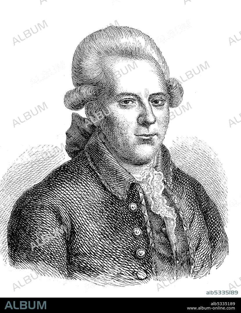 Georg Christoph Lichtenberg, 1 July 1742 - 24 February 1799, a physicist, naturalist, mathematician, writer and the first German professor of experimental physics in the Age of Enlightenment / Georg Christoph Lichtenberg, 1. Juli 1742 - 24. Februar 1799, ein Physiker, Naturforscher, Mathematiker, Schriftsteller und der erste deutsche Professor für Experimentalphysik im Zeitalter der Aufklärung, Historisch, historical, digital improved reproduction of an original from the 19th century / digitale Reproduktion einer Originalvorlage aus dem 19. Jahrhundert,.