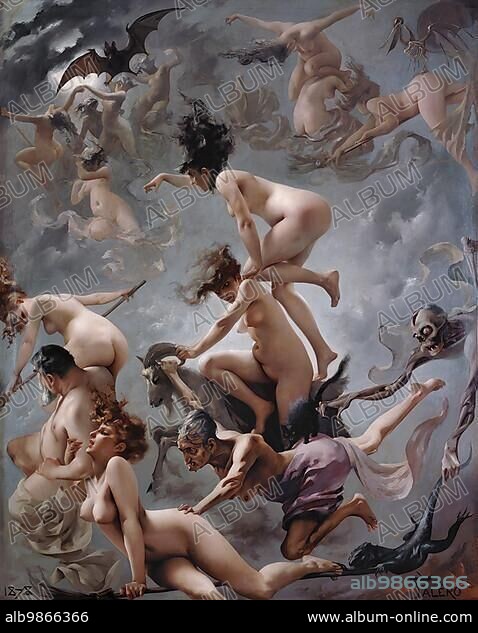 Witches on the Way to their Witches' Sabbath, The Witches' Departure, Painting by Luis Ricardo Falero, Historic, digitally restored reproduction from an original of the period