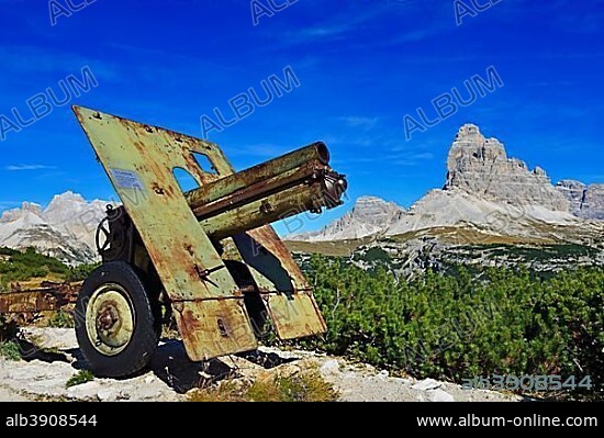 Cannon, World War I Open Air Museum, Monte Piana, Hochpustertal valley, Sexten Dolomiten, South Tyrol, Italy, Europe