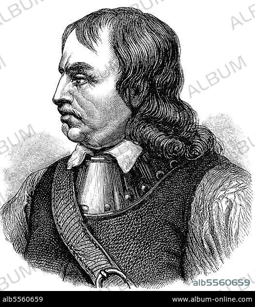 Oliver Cromwell, 25. April 1599, 3. September 1658, war während der republikanischen Periode der englischen Geschichte Lordprotektor von England, Schottland und Irland, Historisch, digitale Reproduktion einer Originalvorlage aus dem 19. Jahrhundert
