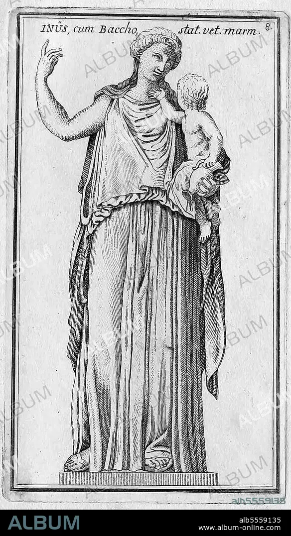 (Ino), ist in der griechischen Mythologie die Tochter des Kadmos und der Harmonia, historisches Rom, Italien, digitale Reproduktion einer Originalvorlage aus dem 18. Jahrhundert, Originaldatum nicht bekannt