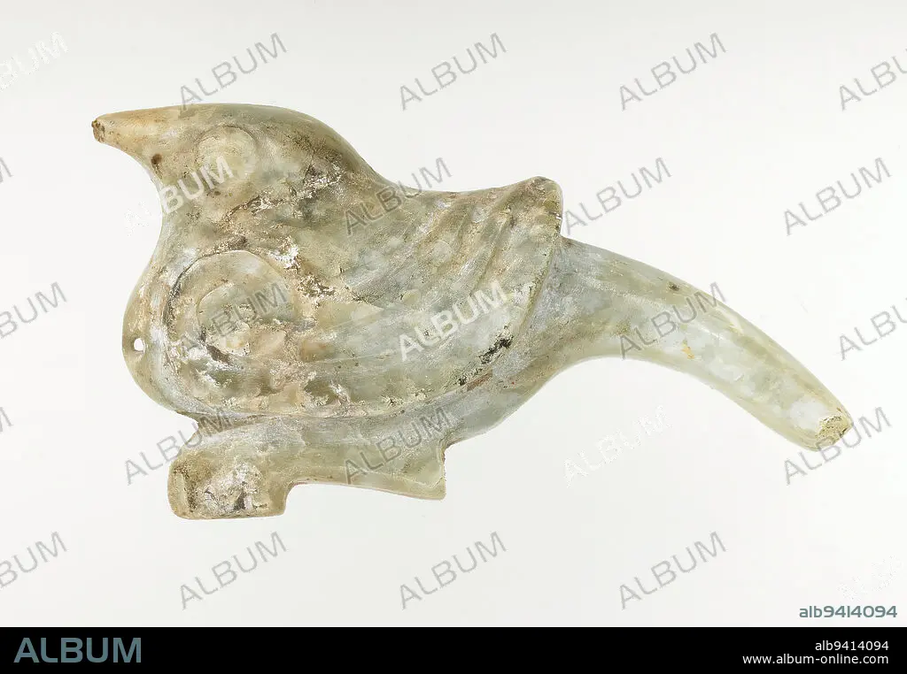 Pendant in the Form of a Bird, 1100-771 BCE, 7/8 x 1 3/4 x 3/16 in. (2.22 x 4.45 x 0.48 cm), Pale grey-green jade, partially calcified, China, 11th-8th century BCE