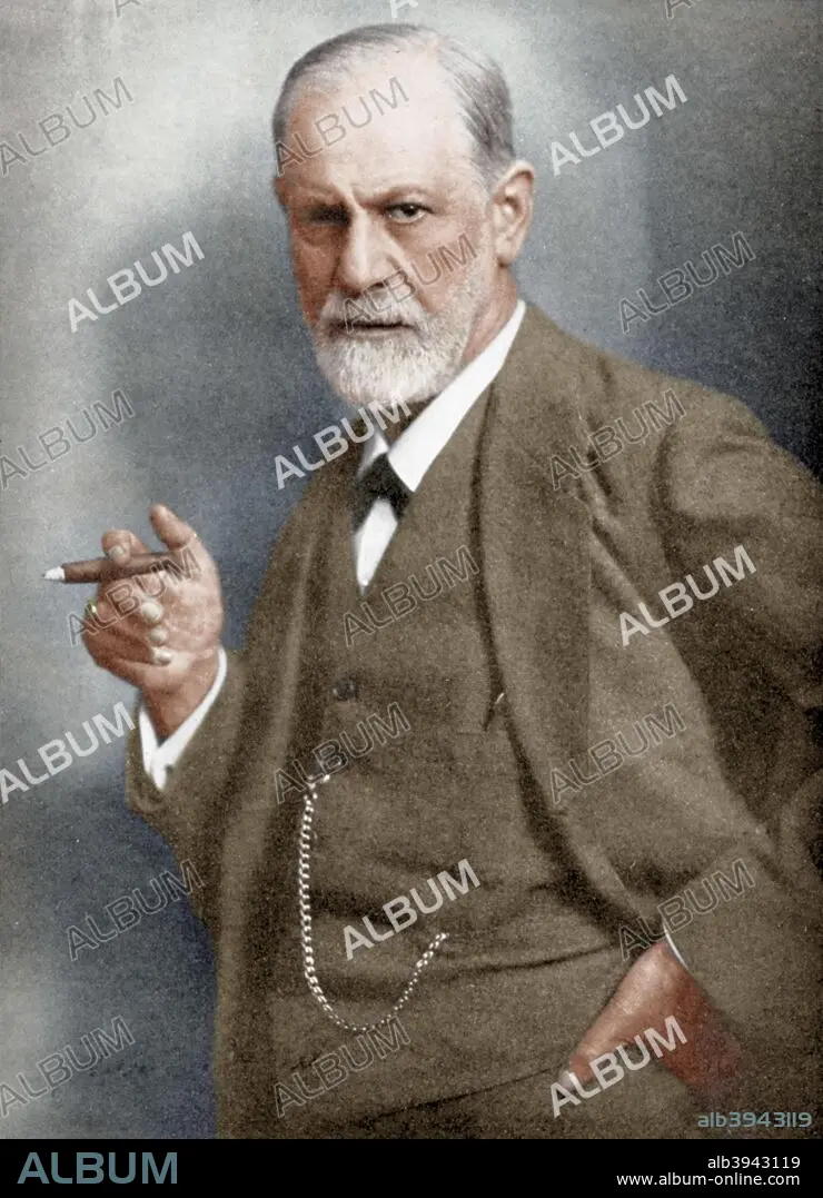Sigmund Freud (1856-1939), Austrian neurologist. Founder of Psychoanalysis. (Colorised black and white print).