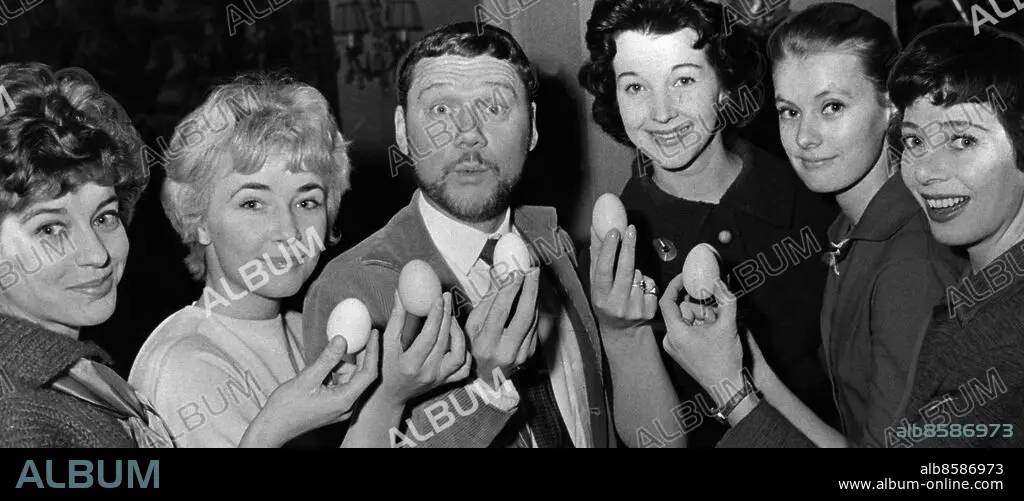 ARKIV STOCKHOLM 19590107.. Intiman har samling för "Ägget" som Åke Falck ska regissera. Från vänster skådespelarna Elsa Prawitz, Lena Granhagen, Olof Thunberg, Inger Juel, Maud Elfsiö och Fylgia Zadig.. Foto: Bertil Stilling / XP / TT / Kod: 40. ** AFTONBLADET OUT **
