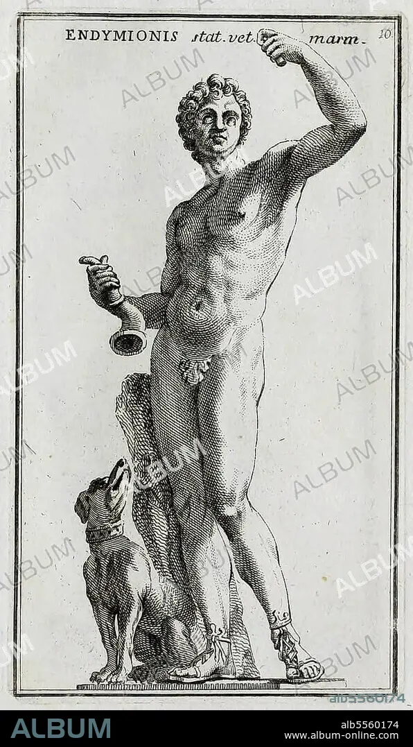 Endymion ist in der griechischen Mythologie der schöne und ewig jugendliche Liebhaber der Mondgöttin Selene, historisches Rom, Italien, digitale Reproduktion einer Originalvorlage aus dem 18. Jahrhundert, Originaldatum nicht bekannt