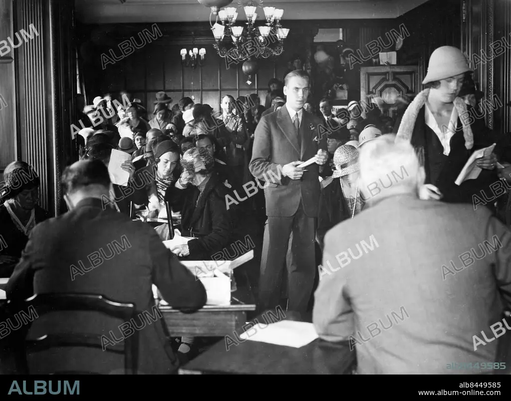 Orig. bildtext... KREUGERAUKTIONEN HAR BÖRJAT. Auktionen på lösöret i Kreugers våning började på onsdagen. En lång kö av köplystna hade samlats utanför Villagatan 13 vid auktionens början. Vi meddela här en bild från auktionen. Orig. bildtext... FROM THE AUCTION ON KREUGER'S CHATTELS IN HIS HOME, VILLAGATAN 13, STOCKHOLM. 7.9.32. Today was the first day, when the chattels of Ivar Kreuger were sold by auction in his home in Stockholm. The first days' result of the auction, which is going on the two following days, was Sw. crowns 25.584:25. Photo shows an interior from the auction hall. Not. Kreuger-auktion, Villagatan 13 Anm. Kreugerkraschen, Kreugerkoncernens sammanbrott och upplösning 1932. CD139 persons: IVAR KREUGER* sites: STOCKHOLM;SVERIGE
