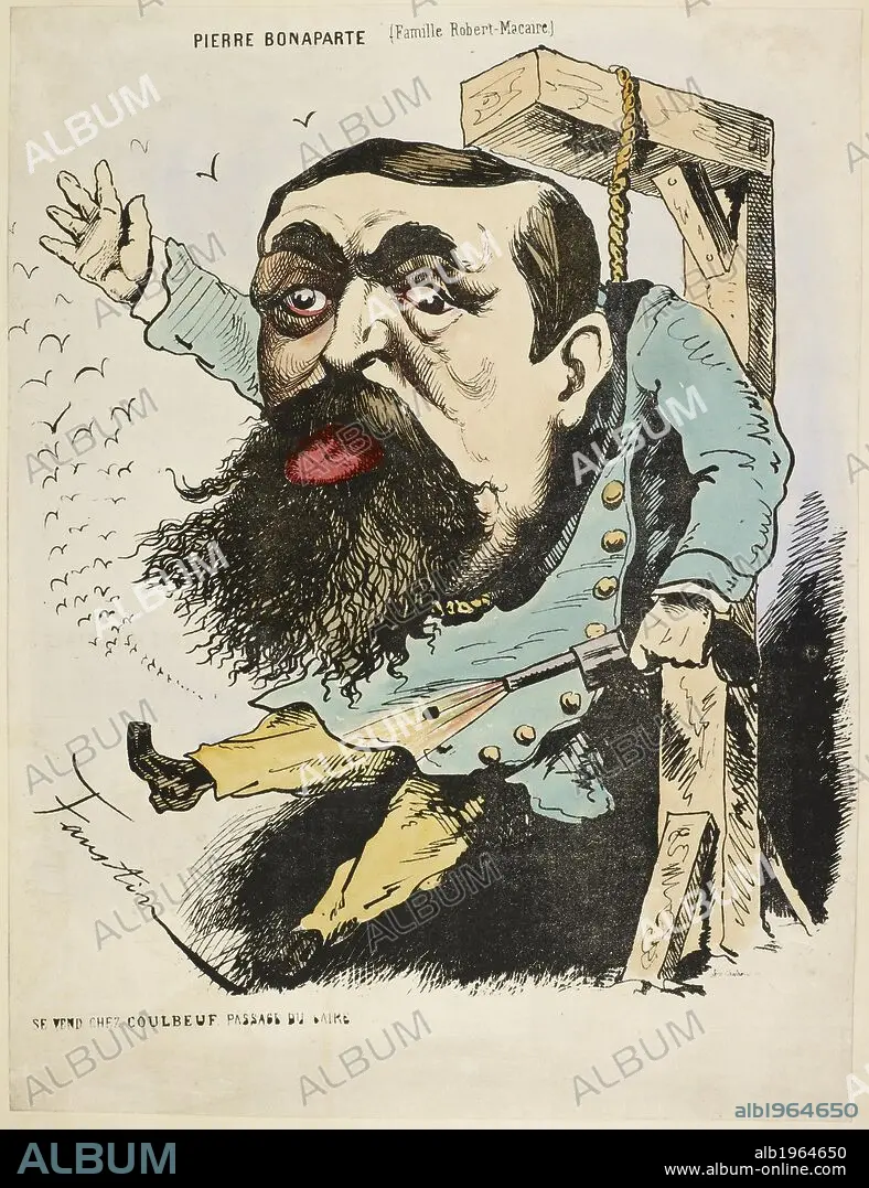 French Caricature - "Pierre Bonaparte". Collection de Caricatures et de charges pour servir aÌ€ l’histoire de la guerre et de la ReÌvolution de 1870-1871. Paris. Collection de Caricatures et de charges pour servir aÌ€ l’histoire de la guerre et de la ReÌvolution de 1870-1871. Source: 14001.g.41 vol.1 18. Language: French.
