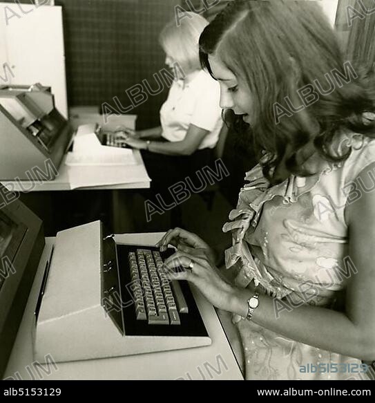 Data input, punching machines punch punch cards on which the commands are encrypted, IBM 360 mainframe computer, Technische Hochschule (today Technical University), historical photograph around 1966, Munich, Upper Bavaria, Bavaria, Germany, Europe