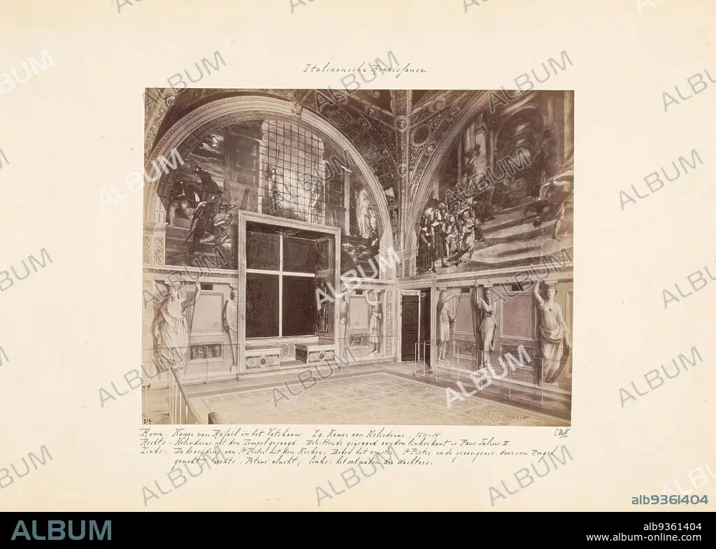 Stanza di Eliodoro in the Vatican, Rome. Room of Raphael in the Vatican . Room of Heliodorus, 1511-14. (title on object), anonymous, Vaticaan Stanza d'Eliodoro, c. 1875 - c. 1900, cardboard, albumen print, height 191 mm × width 245 mm