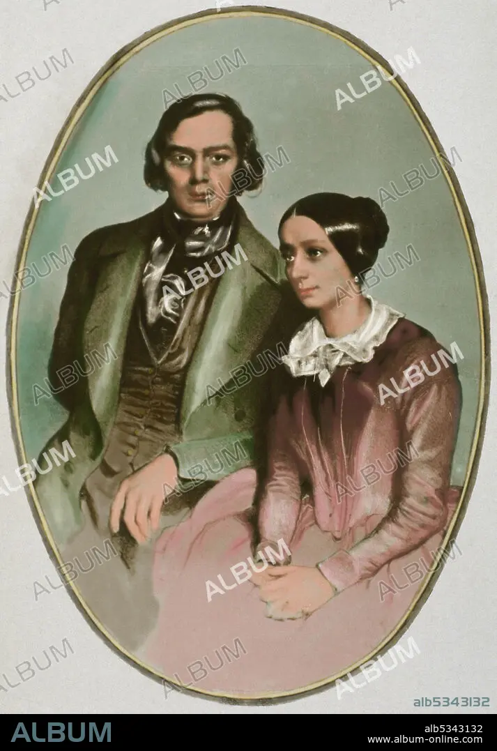 Robert Schumann (1810-1856). German composer and pianist. Clara Schumann (1819-1896). German pianist, wife of Robert Shumann. Portrait of Robert and Clara Schumann. 1847. Later colouration.