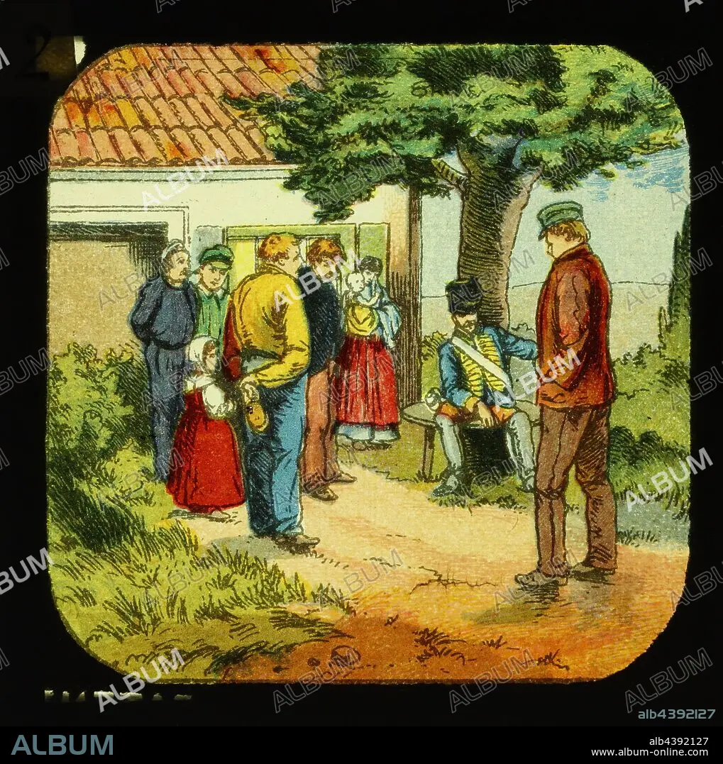 Lantern Slide - 'Bingen on the Rhine', No.2, circa 1850-1880, Number 2 in a series of 12 lantern slides depicting the poem titled 'Bingen on the Rhine' written by Caroline Norton, circa 1847. This set of lantern slides are part of the Francis Collection of pre-cinematic apparatus and ephemera the Australian and Victorian Governments in 1975.