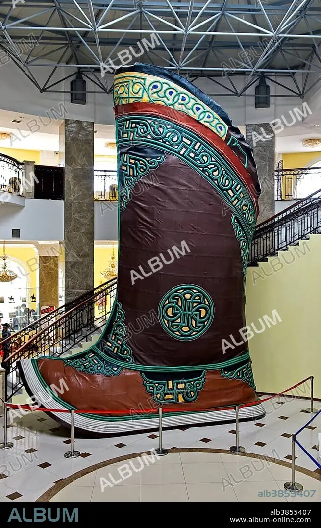 Traditional Mongolian boot, largest shoe in the world, in Genghis Khan Theme Park, Chinggis Khan Statue Complex, Tsonjin Boldog, Mongolia