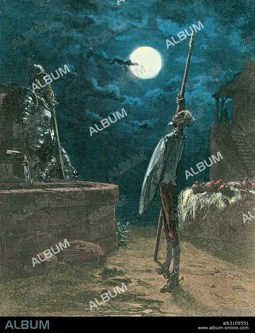 PAUL GUSTAVE DORÉ. Don Quijote: "Arimado a su lanza, ponía los ojos en las armas...".