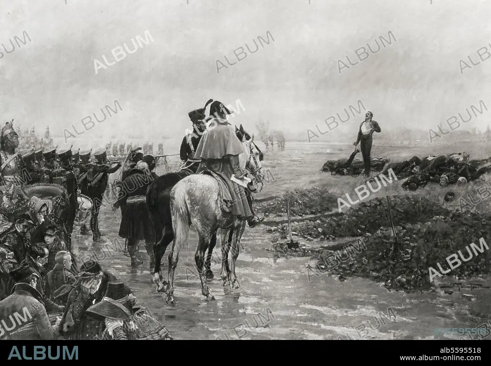 Untertitel: Hinrichtung der Schillschen Offiziere vor Wesel, 16. September 1809. (Nach dem Versuch Ferdinands von Schill, eine Volkserhebung gegen Napoleon I. zu entfachen). "Die Erschießung der elf Schill'schen Offiziere". Gemälde von Fritz Neuhaus (1852-1922).