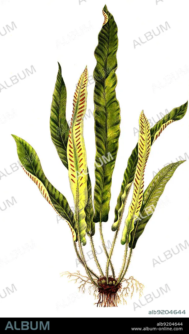 Hirschzungenfarn, Asplenium scolopendrium / Asplenium scolopendrium, commonly known as the hart's-tongue fern.