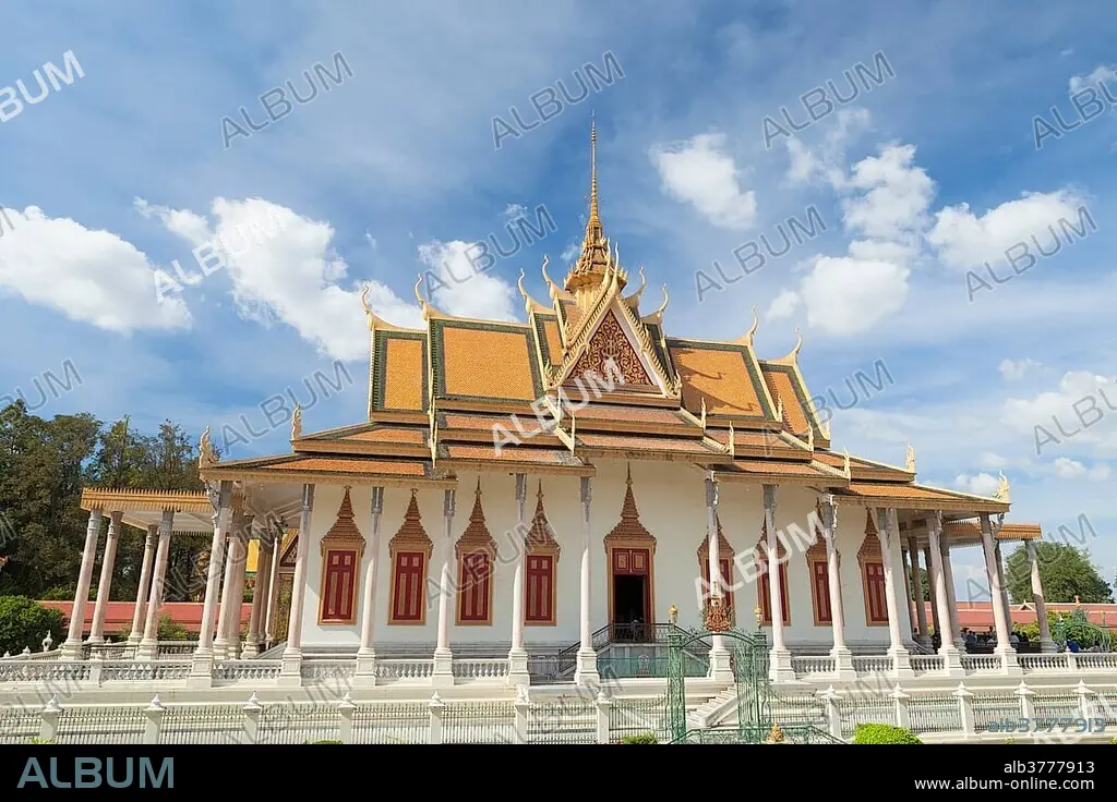 The silver pagoda, Wat Preah Keo Morokot, Temple of the Emerald Buddha, part of the Royal Palace complex, Phnom Penh, Cambodia, Asia.