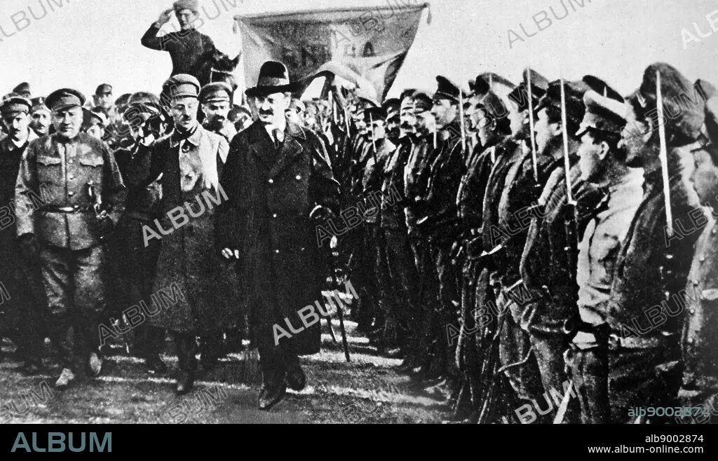 Leon Trotsky (1879 21 August 1940) Marxist revolutionary and theorist, Soviet politician, and the founding leader of the Red Army. Seen here as head of the Red Army after the Russian Revolution 1918
