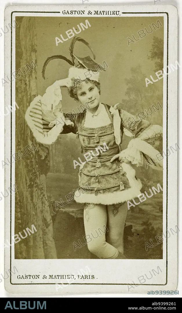 Portrait of Léa (D'asco?), (actress), Gaston, Mathieu & Cie, Photographer, Between 1860 and 1890, 2nd half of the 19th century, Photography, Graphic arts, Photography, Albumen paper print, Dimensions - Work: Height: 8.8 cm, Width: 5.4 cm, Dimensions: Height: 10.5 cm, Width: 6.4 cm