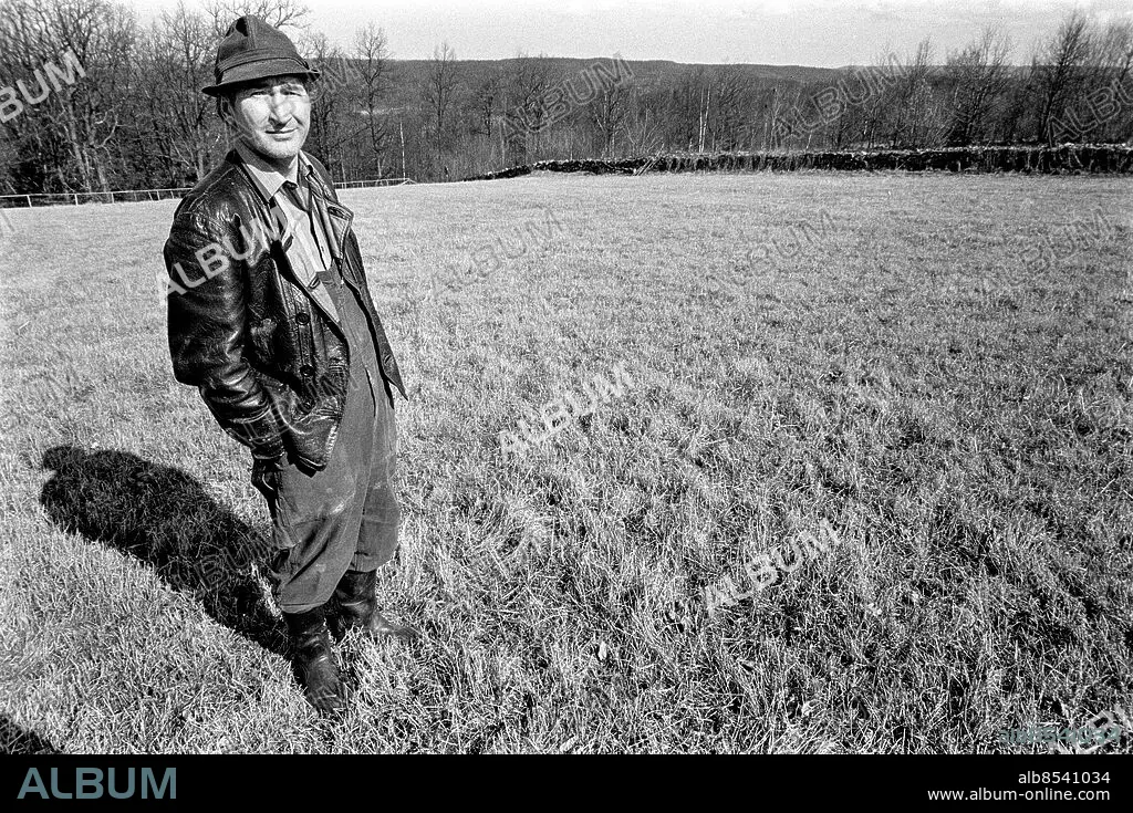 ÖDENÄS 1971-04.. Inspelning av HEM TILL BYN. TV-serie av Bengt Bratt i regi av Jackie Söderman.. Sänt första gången 1971-11-17.. Här ses skådespelaren Rune Ottosson, som Evert Persson.. Foto: Bo-Aje Mellin / RiR / SVT / Kod: 5600. Reportage publ. i RiR 22/71 sid. 10-12 och RiR 47/71 sid. 18-19.. RiR 20131 sv/v neg . TV-teater Handen i fickan
