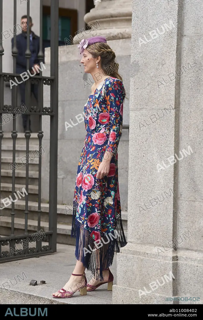 Victoria Lopez-Quesada y de Borbon-Dos Sicilias arrives at the wedding of Jose Luis Martinez Almeida, major of Madrid, and Teresa Urquijo at Sagrado Corazon and San Francisco de Borja Church on April 6, 2024 in Madrid, Spain