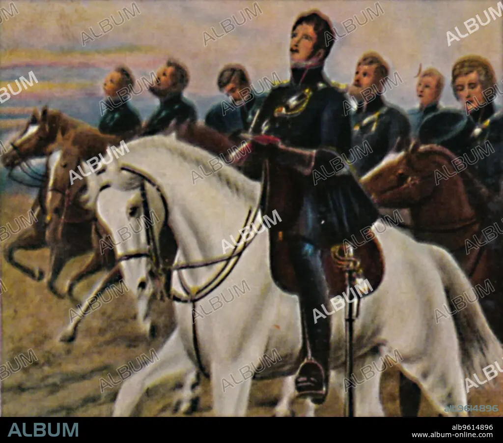 'Theodor Körner 1791-1813', 1934. Carl Theodor Körner (1791-1813), German poet and soldier. After some time in Vienna, where he wrote some light comedies and other works for the Burgtheater, he became a soldier and joined the Lützow Free Corps in the German uprising against Napoleon. From "Die Großen der Weltgeschichte". [Eckstein-Halpaus, Dresden, 1934]