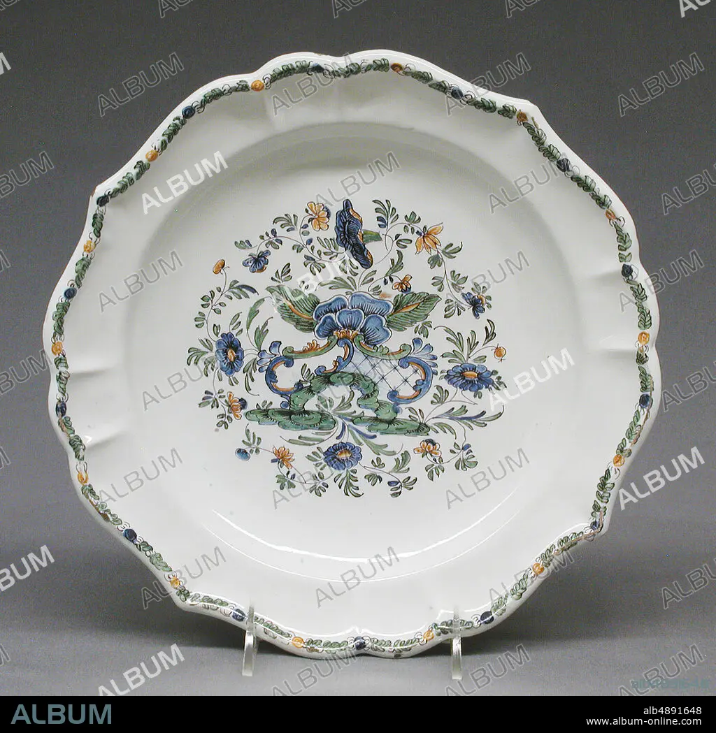 Possibly Le Nove Porcelain Factory, Plate, Italian, probably Nove, Possibly Le Nove Porcelain Factory, ca. 1750, Italian, probably Nove, Maiolica (tin-glazed earthenware), 1 5/8 × 11 in. (4.1 × 27.9 cm), Ceramics-Pottery