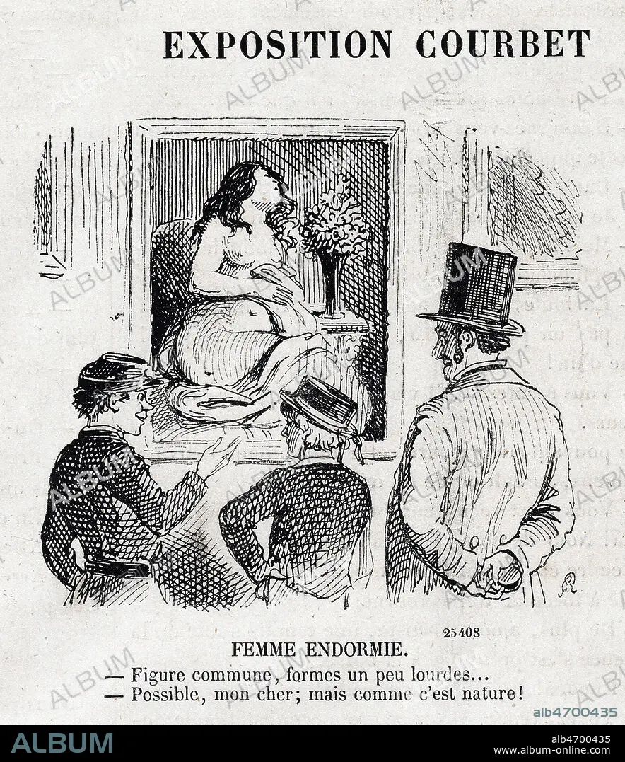 Exposition de Courbet. Femme endormie. Caricature de RANDON (1814-1884) pour Le Journal amusant du 15 juin 1867. Credit : Collection Kharbine-Tapabor.