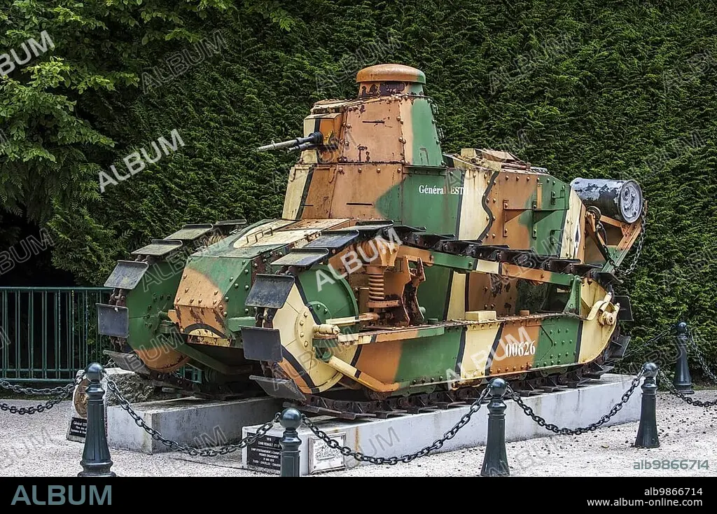 The French light tank Renault FT 17, first World War One armoured tank with a fully rotating turret, Compiègne, France, Europe.