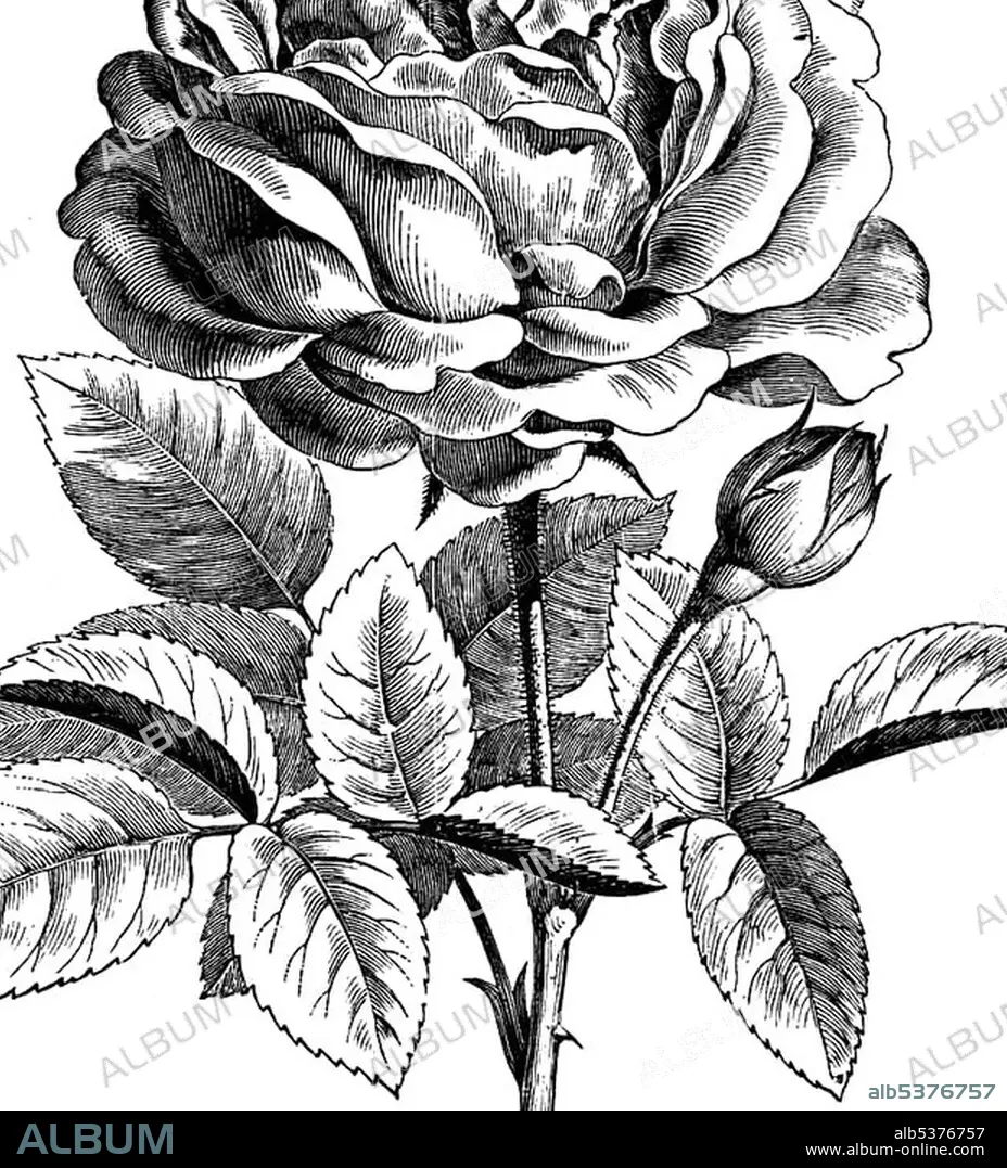 Rose La Reine, historical illustration, Theodor Lange, General Illustrated Garden Book, Volume 1, Leipzig 1902, p. 413, fig. 461