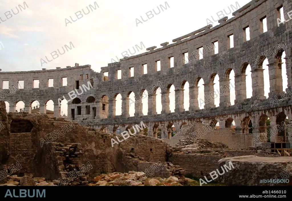CROATIA. Roman Amphitheater. Built in the first century A.D. Declared a World Heritage Site by UNESCO. Inside view. Pula. Istrian Peninsula.