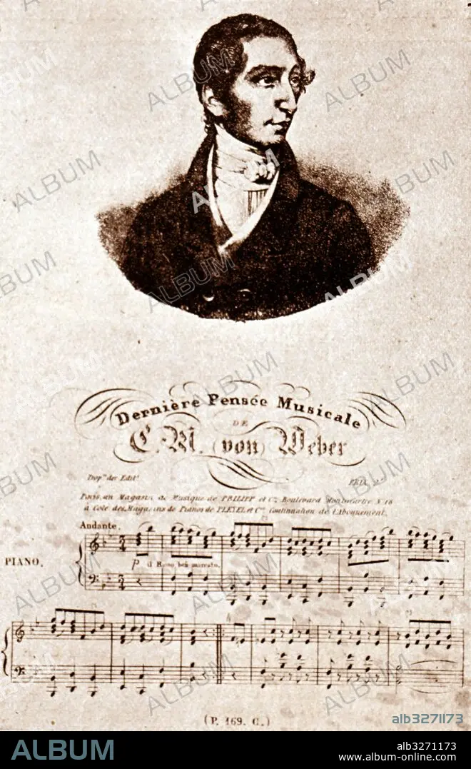 Portrait and 'Last Musical Thought' of Carl Maria von Weber (1786-1826) a German composer, conductor pianist, guitarist and critic. Dated 19th Century.