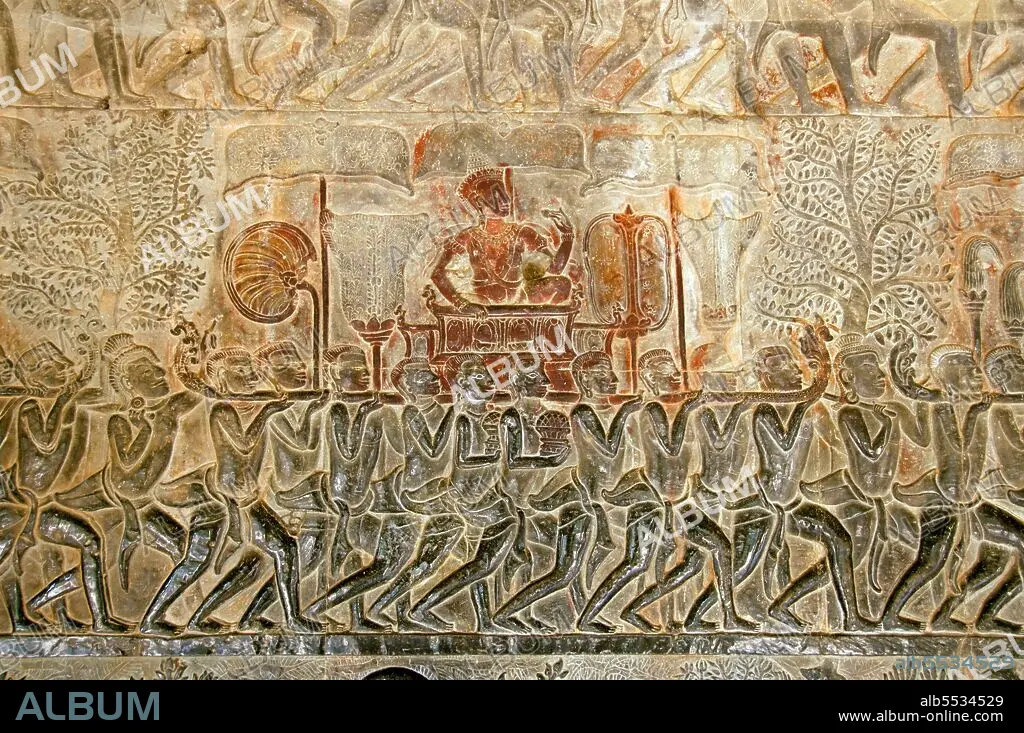 Angkor Wat was built for King Suryavarman II (ruled 1113-50) in the early 12th century as his state temple and capital city. As the best-preserved temple at the Angkor site, it is the only one to have remained a significant religious centre since its foundation – first Hindu, dedicated to the god Vishnu, then Buddhist. It is the world's largest religious building. The temple is at the top of the high classical style of Khmer architecture. It has become a symbol of Cambodia, appearing on its national flag, and it is the country's prime attraction for visitors. Angkor Wat combines two basic plans of Khmer temple architecture: the temple mountain and the later galleried temple, based on early South Indian Hindu architecture. It is designed to represent Mount Meru, home of the devas in Hindu mythology: within a moat and an outer wall 3.6 kilometres (2.2 mi) long are three rectangular galleries, each raised above the next. At the centre of the temple stands a quincunx of towers.