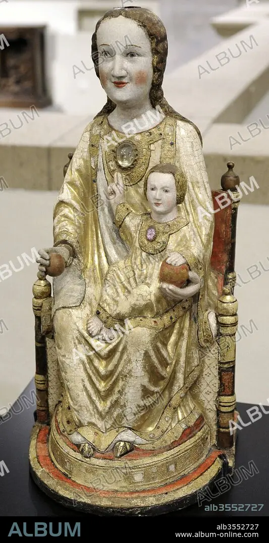 The Virgin Mary with a Rock crystal. Cologne, 1220-1230 and first half of the 14th century (polychromy). Oak and walnut, polychrome. Museum Schnu_tgen. Cologne, Germany.