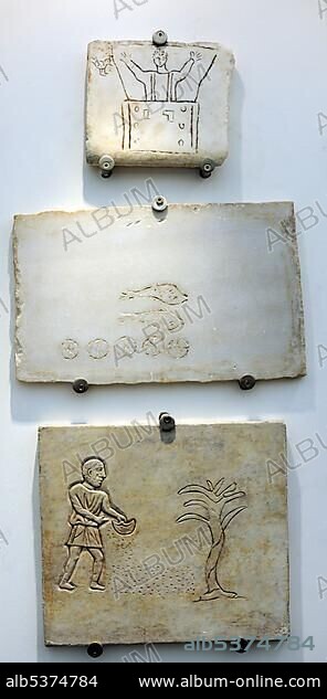 Tombstones with Christian symbols in the Terme Museum, National Museum of Rome, Lazio, Italy, Europe
