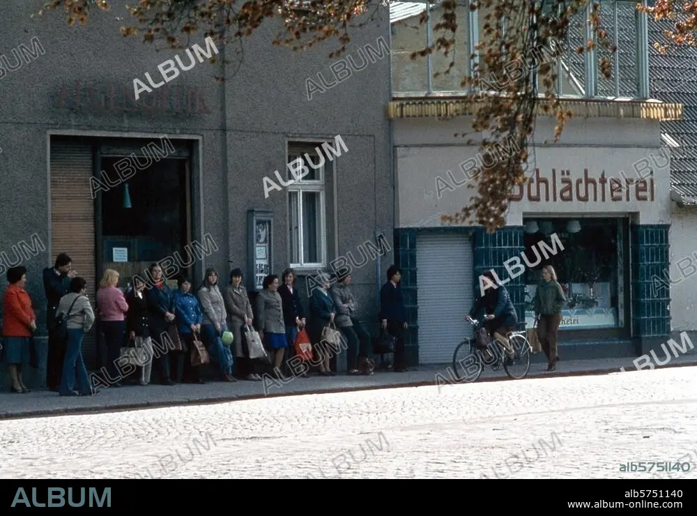 Titel: Käuferschlange vor Fleischerei /DDR / Foto