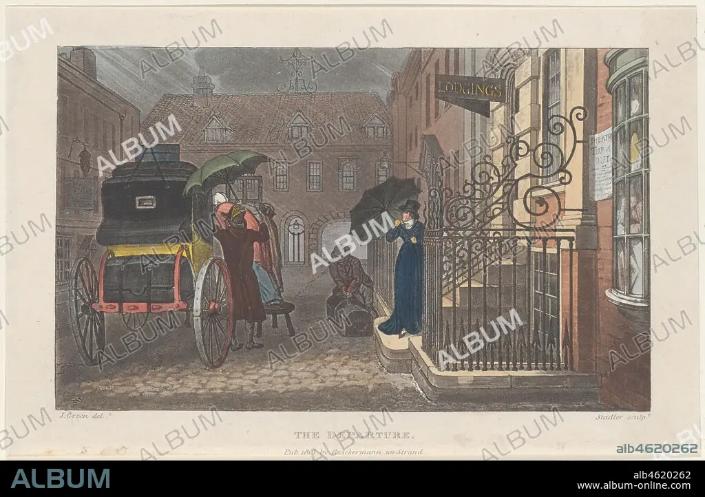 THOMAS ROWLANDSON, JOSEPH CONSTANTINE STADLER. The Departure, from "Poetical Sketches of Scarborough",1813.,1813. Creators: Joseph Constantine Stadler, Thomas Rowlandson.